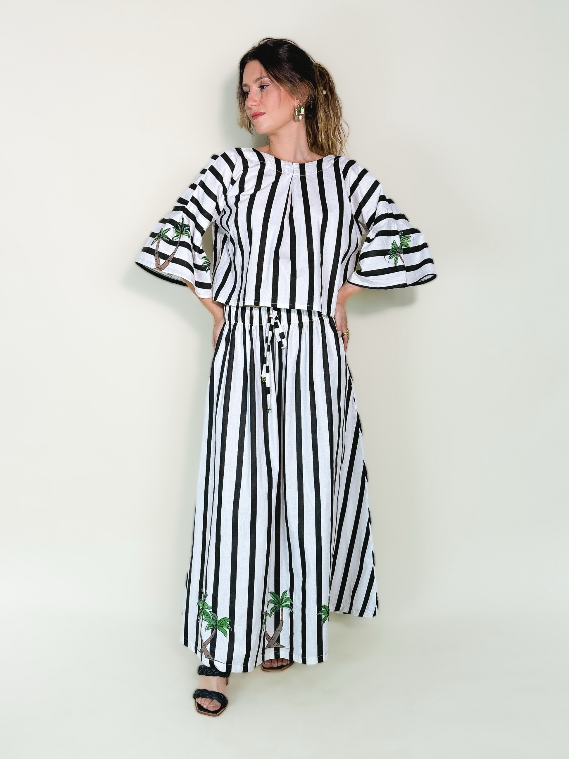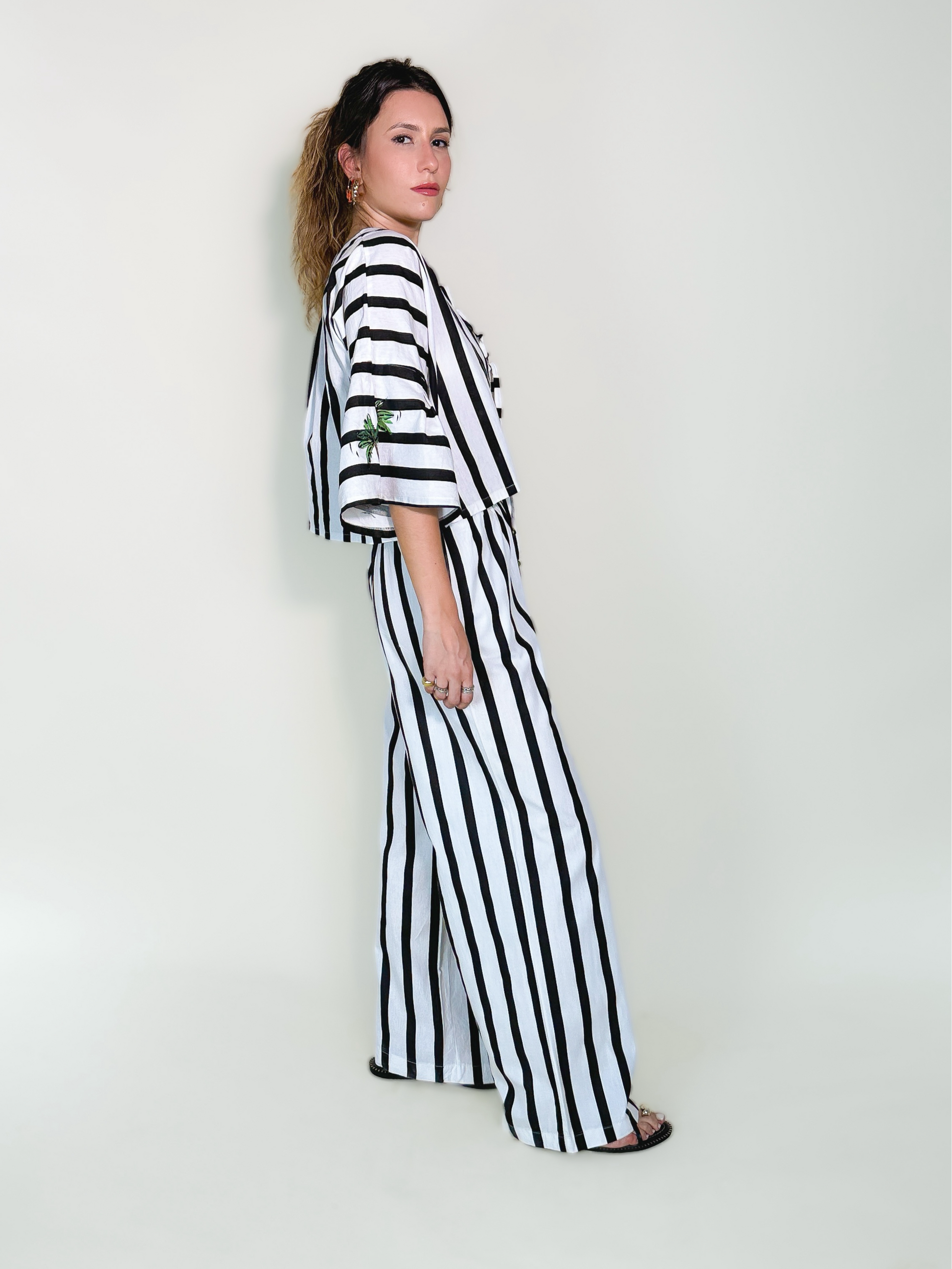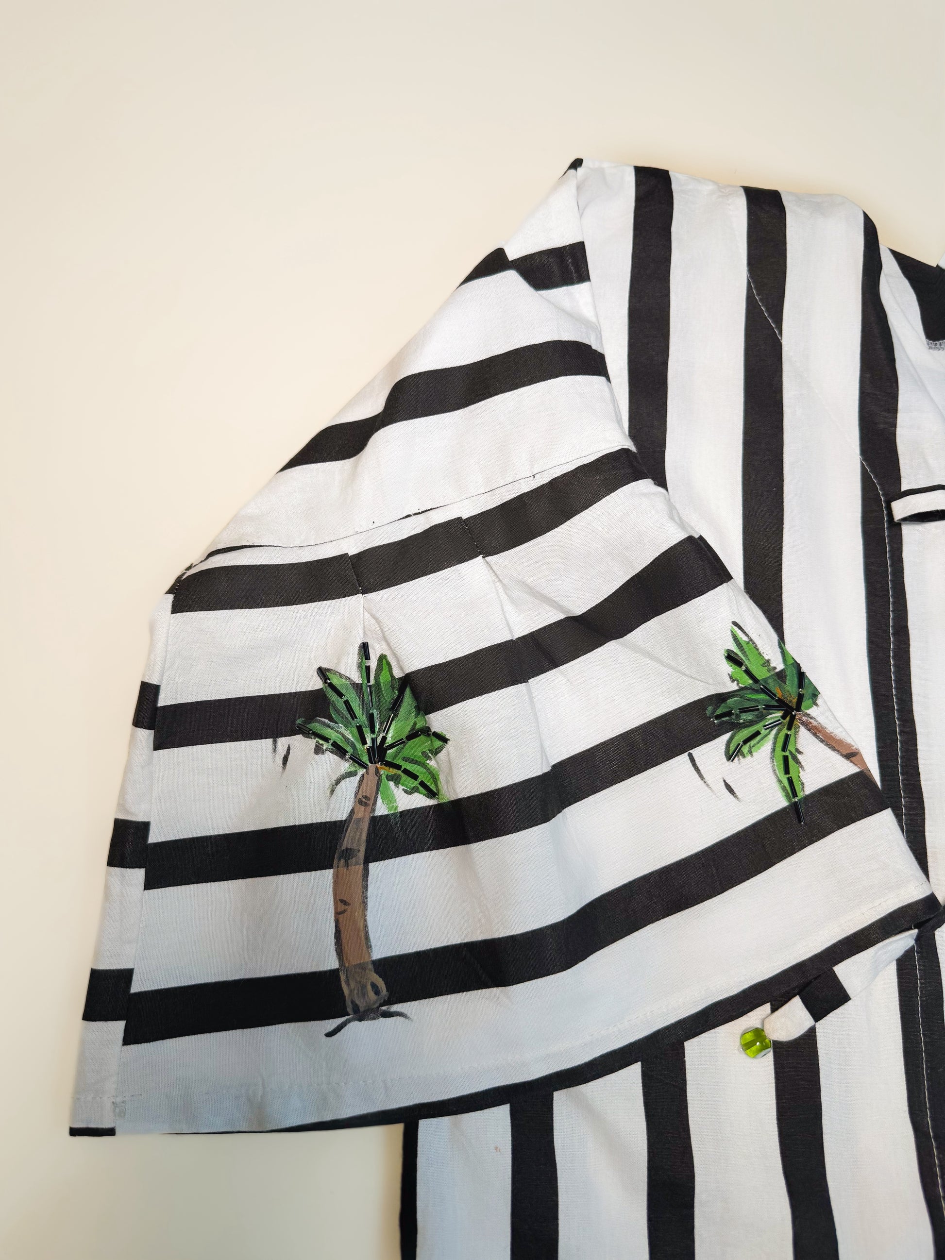 Possui pinturas feitas à mão nas mangas e finalizadas com bordados, que trazem todo um charme a mais para a peça.