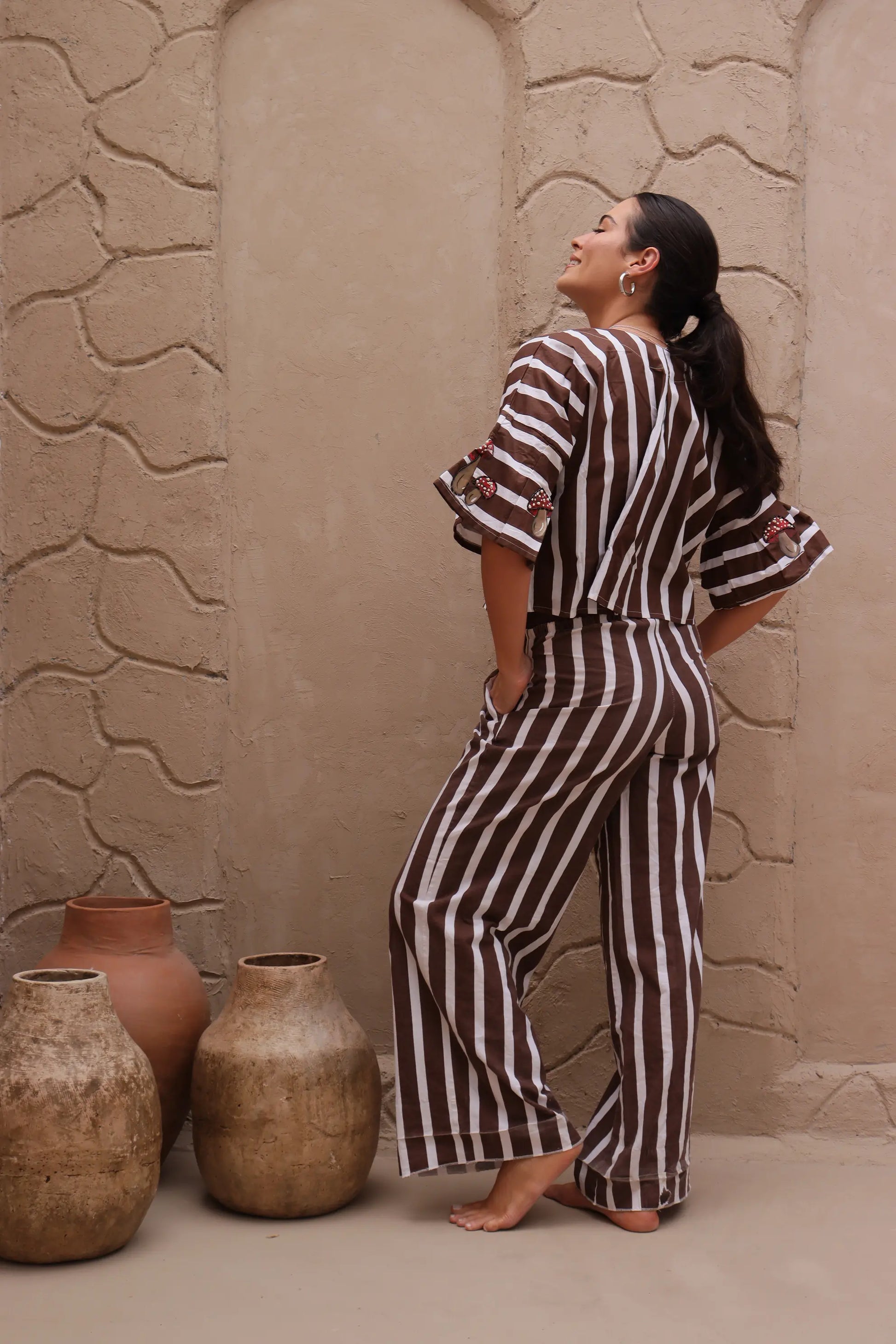 Calça Comfy Listras Marrom