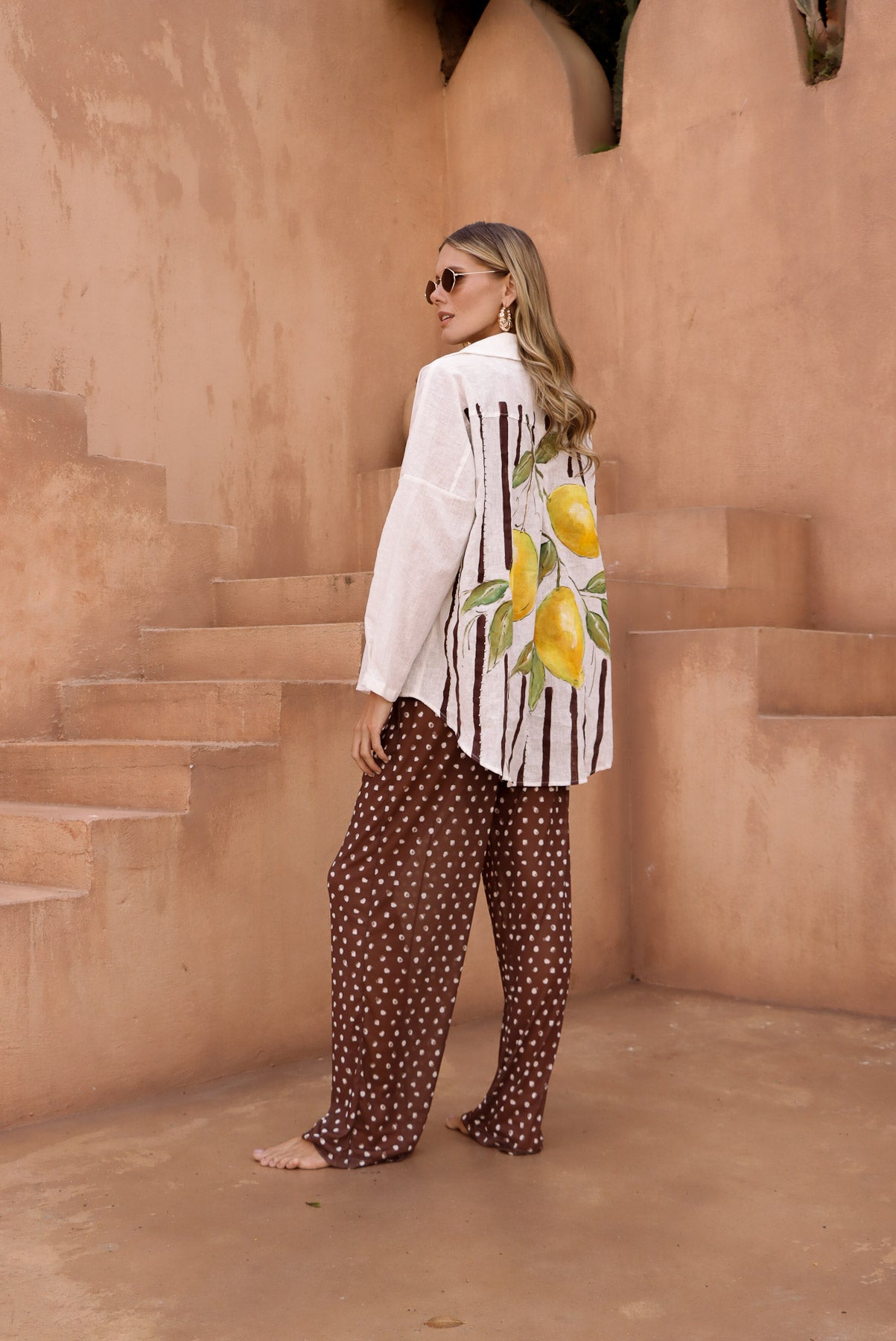 Camisa linha Deluxe Lumiere, confeccionada em tecido natural na cor off-white.