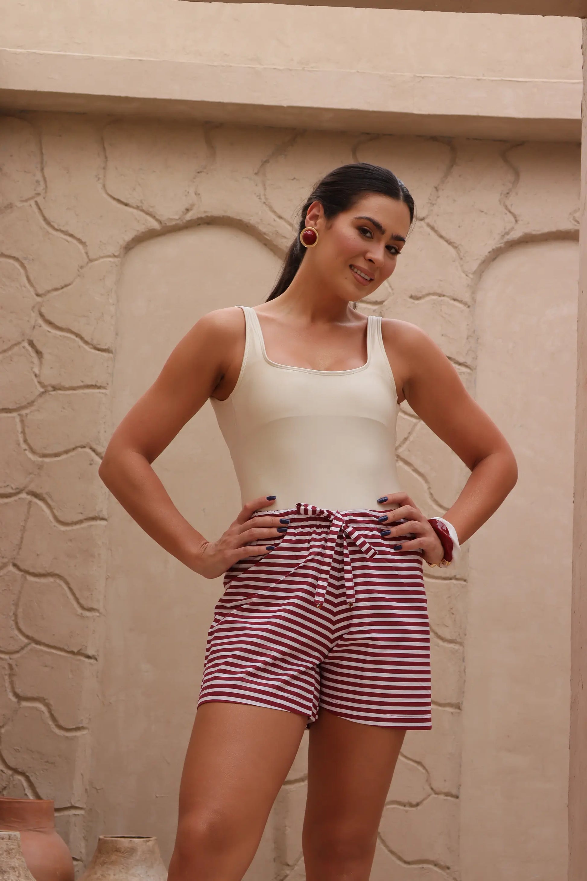 Short Comfy Listras Vinho